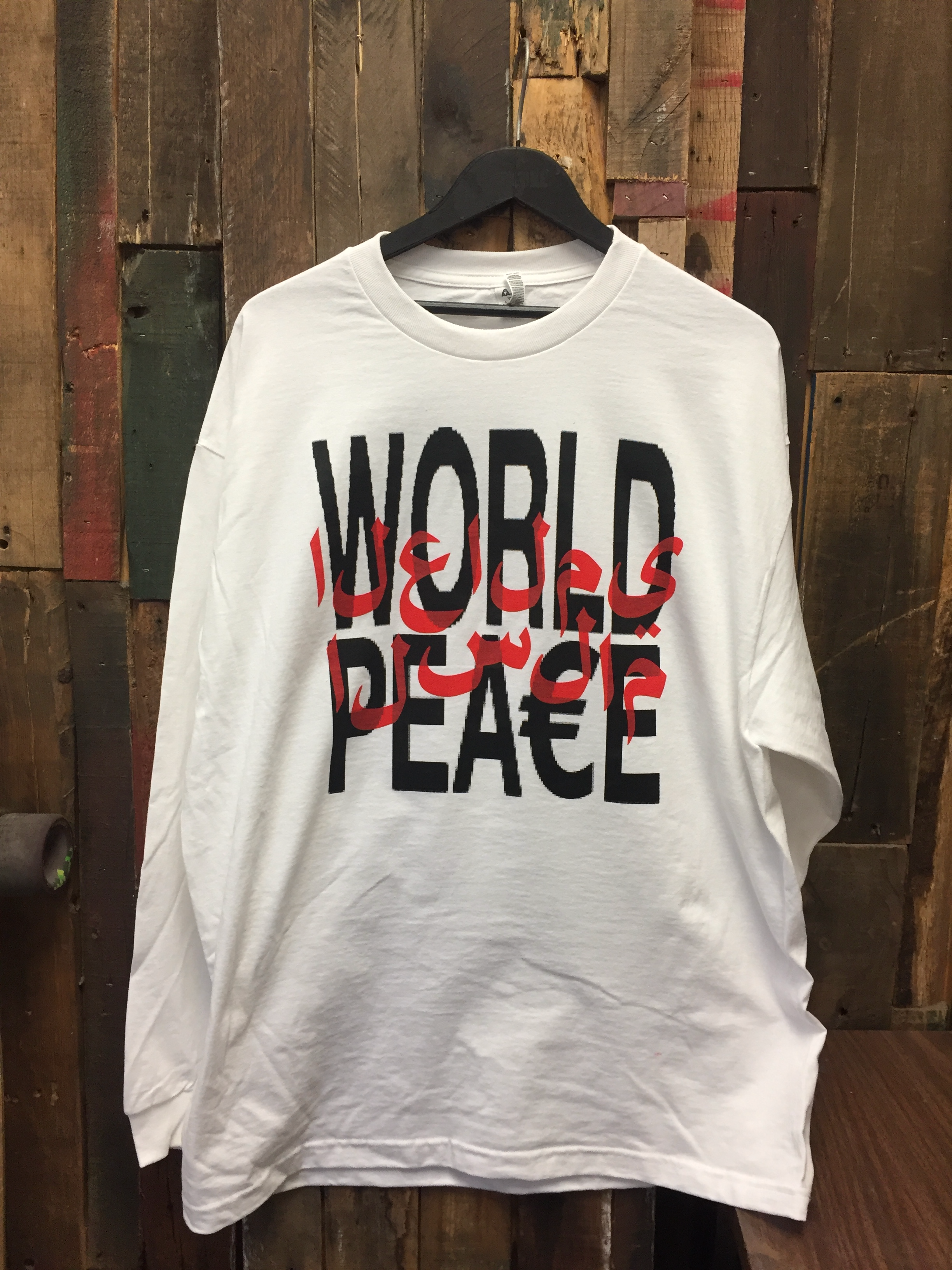 T-Shirt, Zine, Trinket design and production based around the concept of the cost of achieving Peace, Worldwide and within our Daily Lives. Laser printed, hand-cut & bound paper zine, water-based 2color silkscreen 100% cotton t-shirt, laser cut and frosted clear acrylic logo keychain, vinyl sticker. Made in Toronto. All profits donated to Amnesty International.